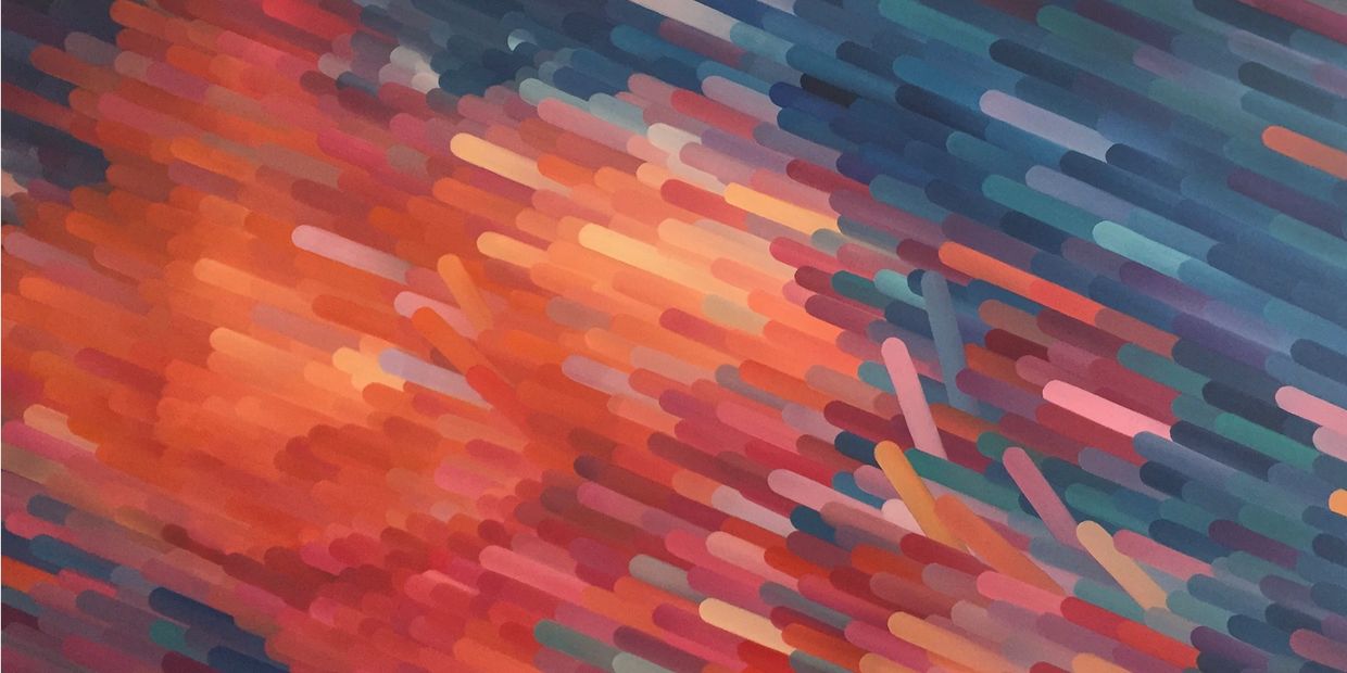 Porras has dedicated years to studying color and light and the effects created when they are used to manipulate how positive and negative spaces are supposed to be perceived by the viewer. Splashes of bright white and red work as decoys that