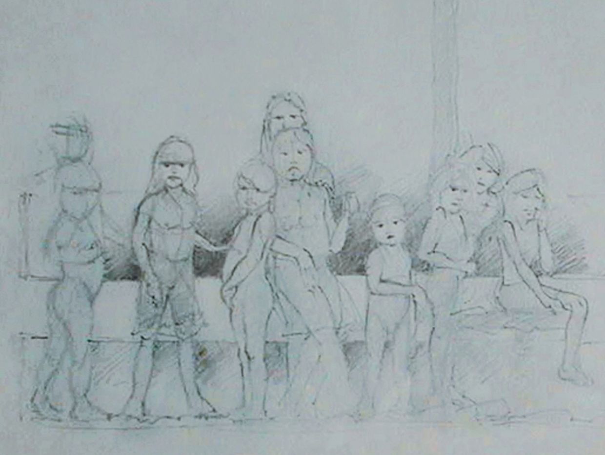 I started sketching a couple of girls that sat quietly by the edge of a log,